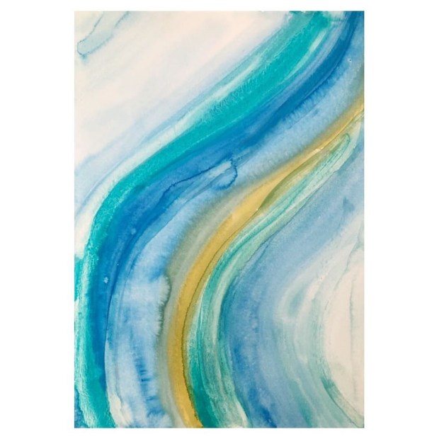 Inspirada en el agua y el viento, esta obra utiliza colores turquesa, dorados y blancos que transmiten calma y claridad. Es una corriente serena que invita a dejarse llevar, como un pensamiento que cruza el alma.